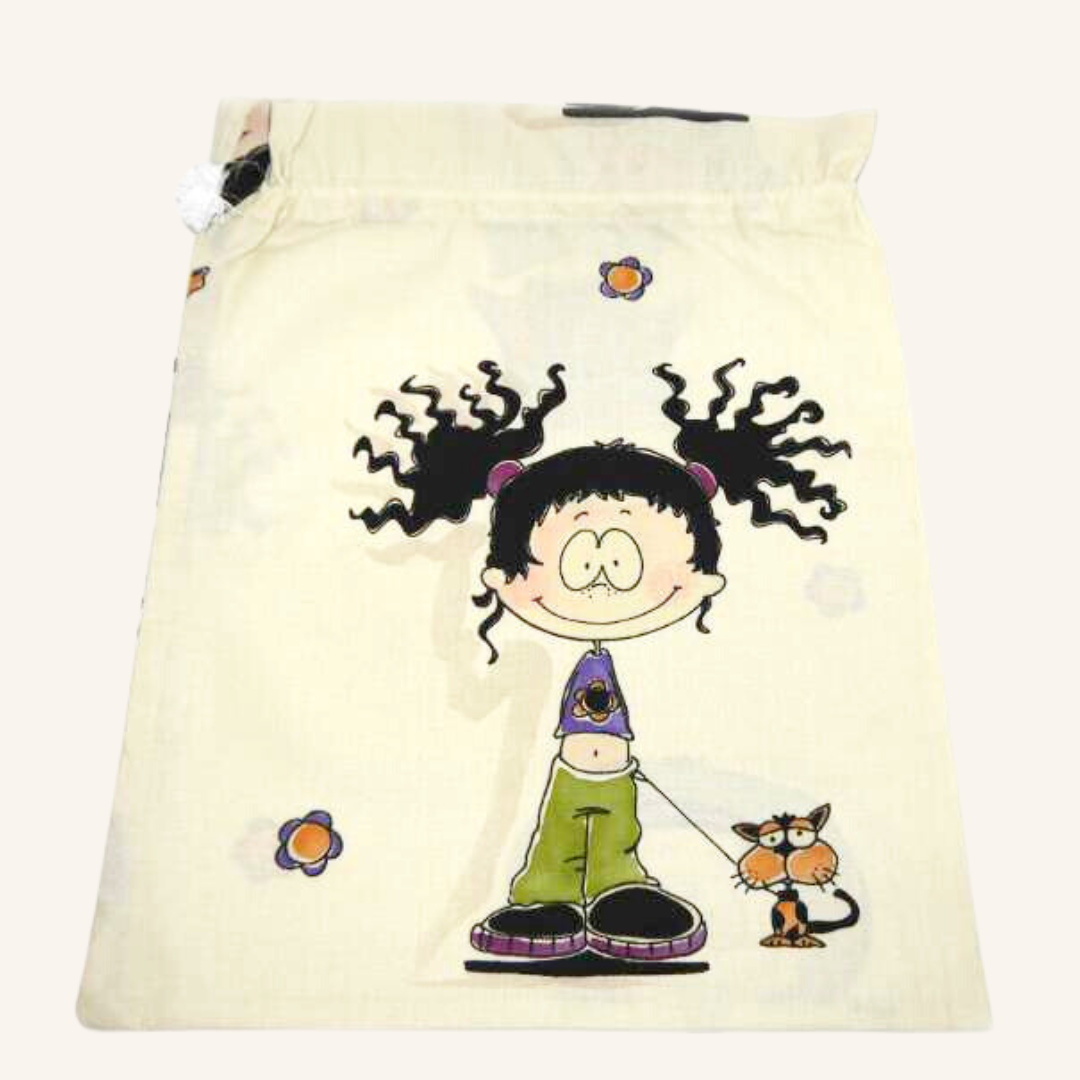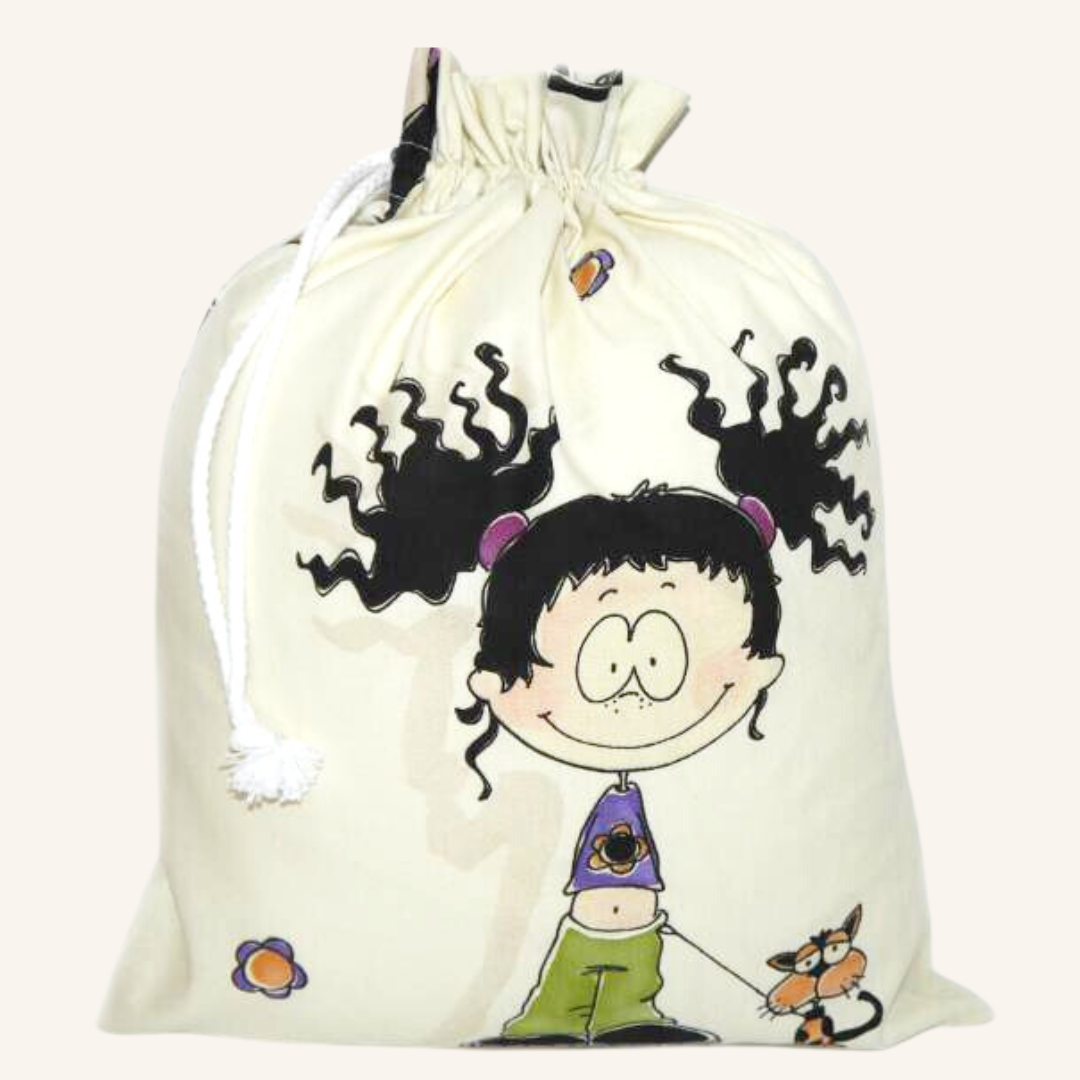 Der Baumwollbeutel wird -kinderleicht- mit einer Kordel zugezogen!